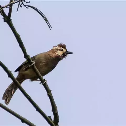 褐头凤鹛小型鸟类,体长12~13厘米。头顶有可竖立的红褐色羽冠,头侧、枕、颊、喉和下体白色,…