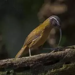 剑嘴鹛:中型鸟类,体长21-22厘米。嘴特别细长而向下弯曲,头顶和头侧烟灰色具长而窄的白色眉纹,…