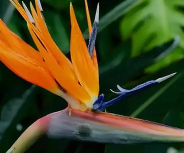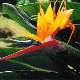 鹤望兰,别名天堂鸟,为鹤望兰科鹤望兰属的一种多年生草本植物;无木质树干;花序生于与叶柄近等长或稍短的花序梗上,佛焰苞1;花较小,萼片橙黄色,长7.5-10厘米,箭头状花瓣基部具耳状裂片,暗蓝色;花期在冬季。该物种原产非洲南部,在中国南方大城市的公园、花圃有栽培,北方则为温室栽培。性喜温暖湿润、阳光充足的气候,适宜生长的温度为25℃左右,耐干旱、较耐寒、不耐水湿,要求疏松肥沃、排水良好,以土层深厚的沙壤土为宜。因花形美丽似鹤,花开时犹如仙鹤翘首远望,花朵寿命亦长,故中文名为鹤望兰。鹤望兰素有“鲜切花之王”的美誉,是一种名贵的观赏花卉,深受广大消费者喜爱。同时,鹤望兰也宜大盆栽植,布置在公园、客厅、会议室、展厅候机室等处。鹤望兰是美国洛杉矶市的官方花卉象征。