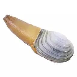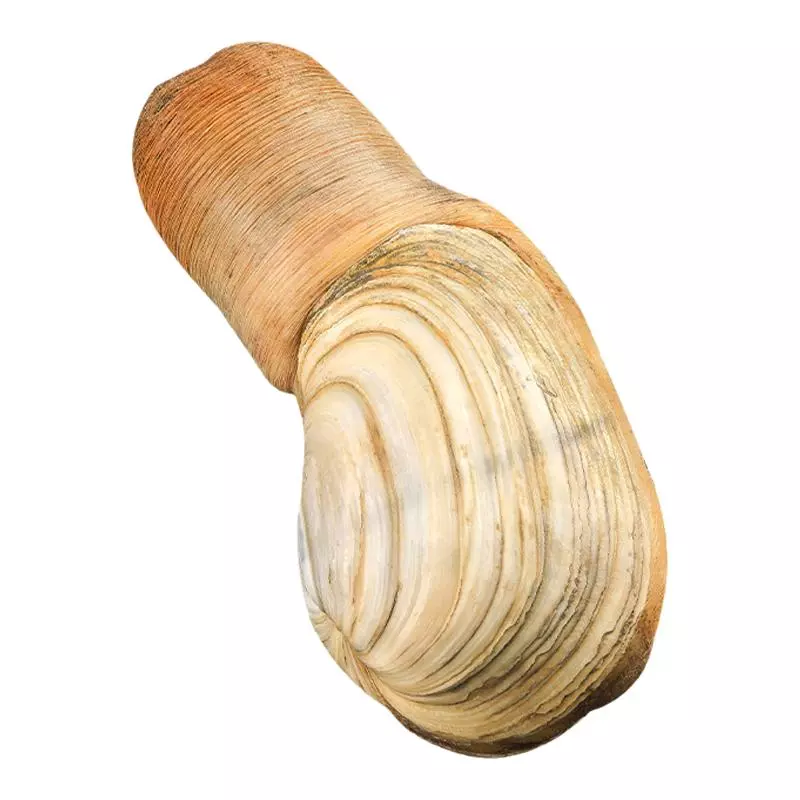 贝壳薄而脆,两壳小,通常相等,壳面前端有锯齿状的齿,背 象拔蚌(图2) 壳的背、腹及后端有副壳,水管极发达,粗状水管不能完全缩入壳内,留在壳外的部分有的长达10余厘米,形如象鼻,故名象拔蚌。