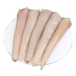 选购的方法是眼看、手摸。眼看,外壳开口而不能复闭的,为死蚌;手 象拔蚌(图5) 摸,用手触摸蚌壳时,仍然显得“硬口”的,也是死蚌。另外,初加工前用手稍捏,其肉体会出现跳动、收缩的反应,切片后肉质透明呈波曲状,有鲜香味,此应为活体;反之,切片后平直且有腥味,即非活体。