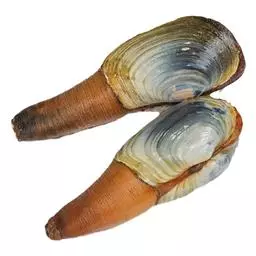 象拔蚌(学名:Panopea abrupta):生物名称是太平洋潜泥蛤,又名皇帝蚌、女神蛤,海产商品名称“象拔蚌”。象拔蚌是已知最大的钻穴双壳类动物,壳长约18-23厘米,水管可伸展1.3米,不能缩入壳内,体重连壳可达3.6公斤,是蛤属的大型贝类。 主要分布在美国、加拿大东海岸 。