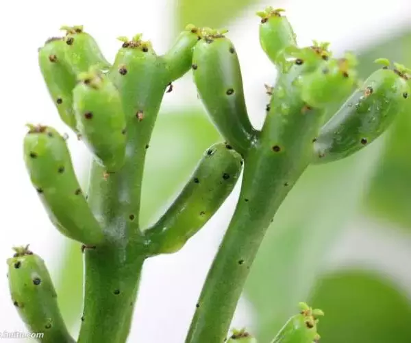 整株树无花无叶,仅剩光秃秃的枝丫,犹如一根根棍棒插在树上。故人们戏称为“光棍树”,也有人叫它“绿玉树”、“神仙棒”。光棍树的茎中含有乳白色的汁液,故又有人叫它“牛奶树”,它茎干中的白色乳汁可以制取石油。 喜温暖干燥和阳光充足的环境,耐干旱和半阴,不耐寒,忌阴湿,无明显休眠期 。