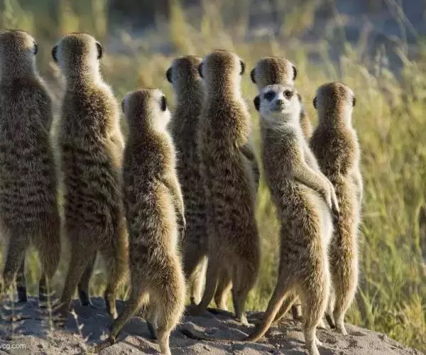 2016年9月14日,猫鼬家族来拍全家福了。5个小家伙站成一队,乖乖的叠起罗汉瞪大眼睛,有一个小家伙甚至托着腮帮,似乎正等着拍照。只有一个二货背对着镜头,看上去还没搞明白怎么回事。来自瑞士巴塞尔的摄影师Markus Walti拍到了这搞笑的一幕。