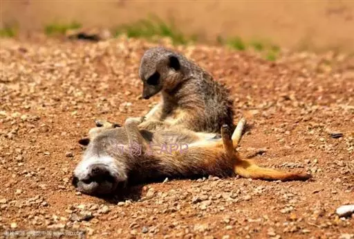 狐獴(学名:Suricata suricatta),头尾长42-60厘米,是一种小型的哺乳动物。体形粗笨。四肢短,后足仅具4趾,趾间有蹼;尾长而圆,约为体长的2/3,上被小鳞片及稀疏的毛。背部毛色黑褐,杂以黄色毛尖,绒毛为深咖啡色;尾两色,上面棕黑色,尾基部和下部为淡黄色。