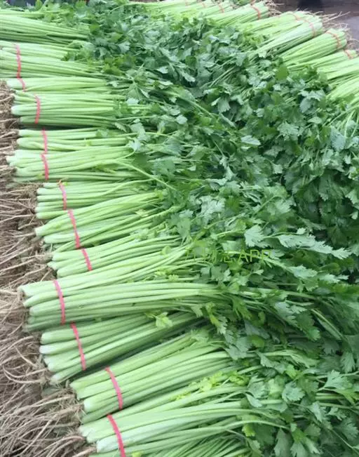 看菜叶:新鲜的芹菜叶是平直的,而存放时间较长的芹菜,叶子尖端会翘起,叶子软,甚至会发黄、起锈斑。另外,叶色浓绿的芹菜不宜买,因为粗纤维多,口感老。