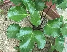 多年生叶片肉质,叶近圆形或肾形,有V形缺口,叶长 2~3 公分,宽 1.8~2.5 公分,边缘有 5~7 浅裂,裂片有钝锯齿,浅裂约等于锯齿深度,基部心形,掌状脉 7~9,叶面疏生短硬毛;叶柄长 5~15 公分,柄上密被柔毛;托叶膜质,顶端钝原或有浅裂,长 0.1~0.2 公分。