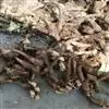 呈不规则厚片或段。外表皮黄白色至淡黄棕色,半透明,有时可见环节。切面角质样或显颗粒性。气微,味甘,嚼之发黏。