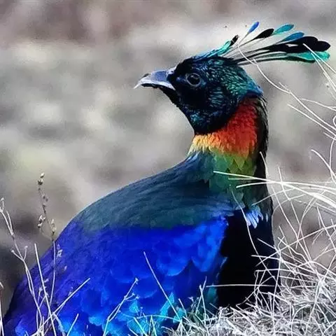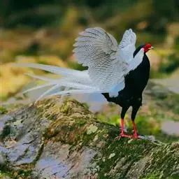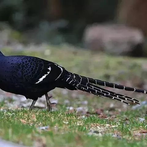 黑长尾雉大型鸡类,体长53~88厘米。雄较雌大。雄鸟通体紫蓝色,脸鲜红色,翅上有一条显著的白色翅斑…
