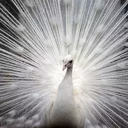 白孔雀,脊椎动物,鸟纲,雉科。其全身洁白无瑕,羽毛无杂色,…