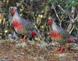 黄腹角雉:是鸟纲、雉科中国特产的一种鸟类。体长约50-65厘米。雄鸟上体栗褐色,…