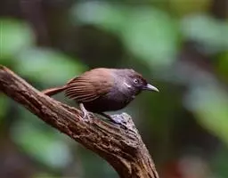 棕噪鹛中型鸟类,体长25~28厘米。上体赭褐色,头顶具黑色羽缘,尾上覆羽灰白色,尾羽棕栗色,…