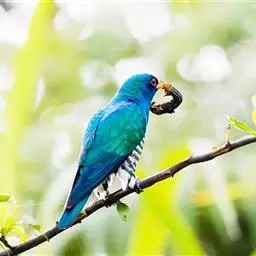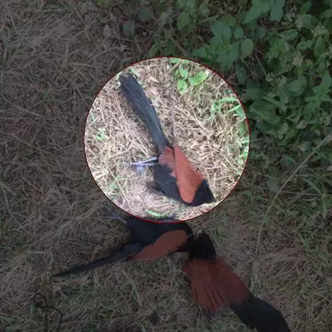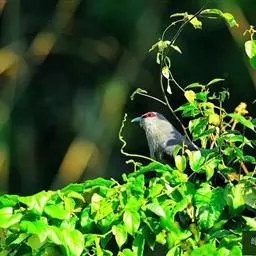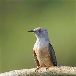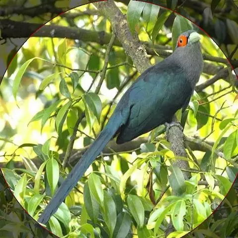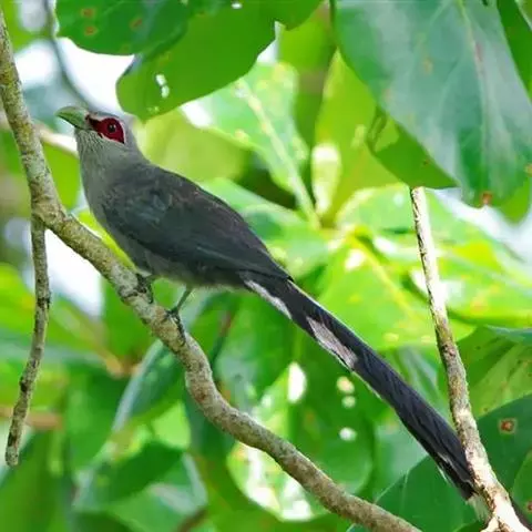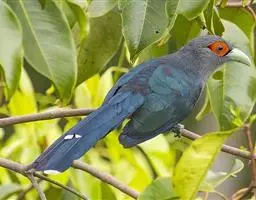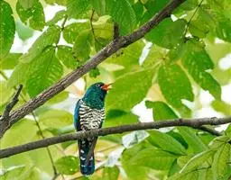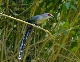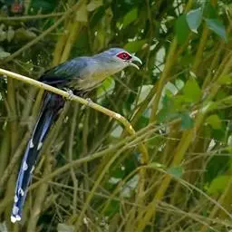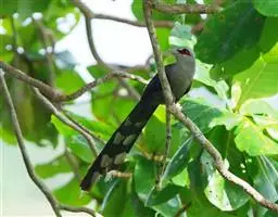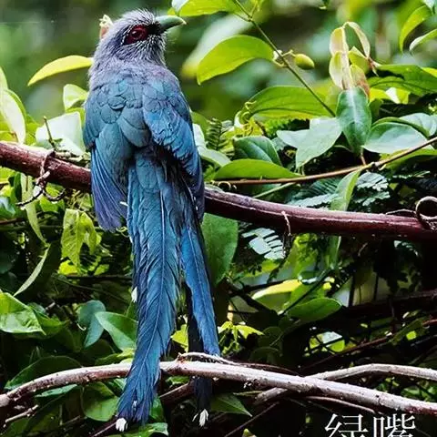 绿嘴地鹃:体形似小鸦鹃,但羽色大致绿灰;嘴绿色,头侧眼的周围有一裸区;后爪弯曲。虹膜赤红色,…