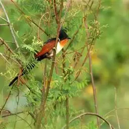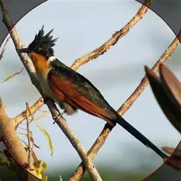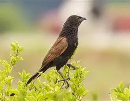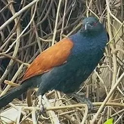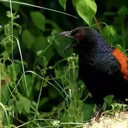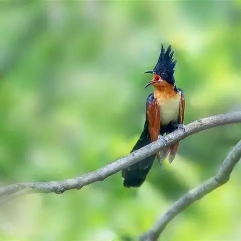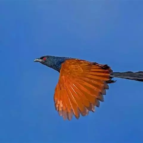 红翅凤头鹃:体长约38厘米,顶冠及凤头黑色,具显眼的直立凤头,背及尾黑色而带蓝色光泽,翅栗红色,…