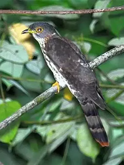 大杜鹃:是普通杜鹃的中国亚种。体长约320毫米,翅长约210毫米。雄鸟上体纯暗灰色;两翅暗褐,翅缘…