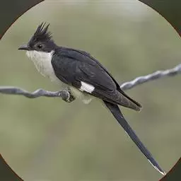 斑翅凤头鹃: 成鸟具羽冠,上体及头侧、翅、尾等黑色,具铁绿色亮辉,尾羽端部具白斑,两侧者形宽,…