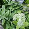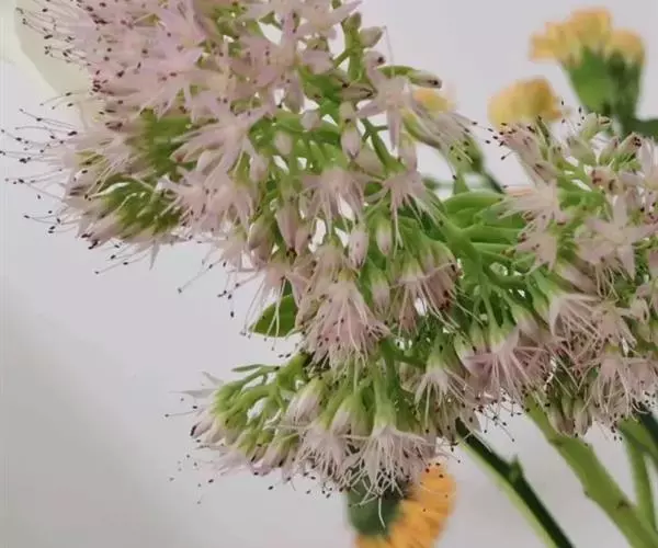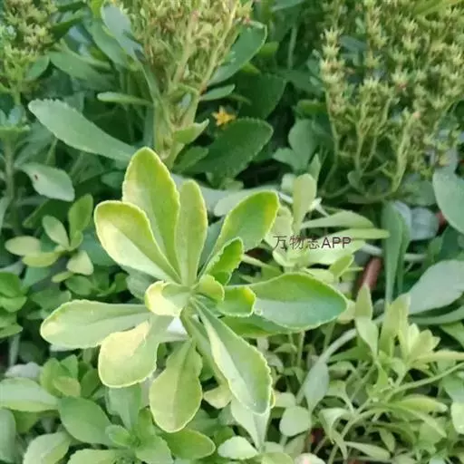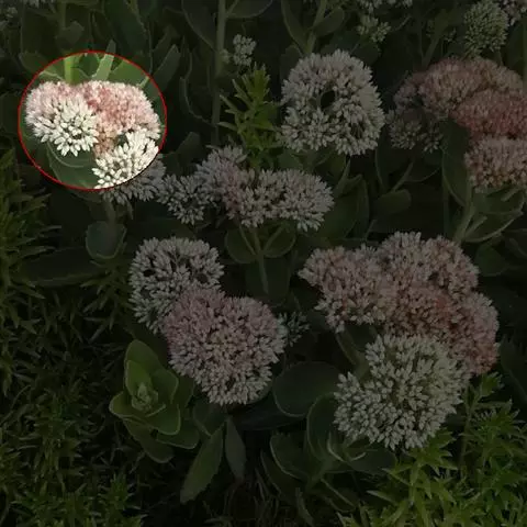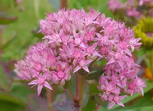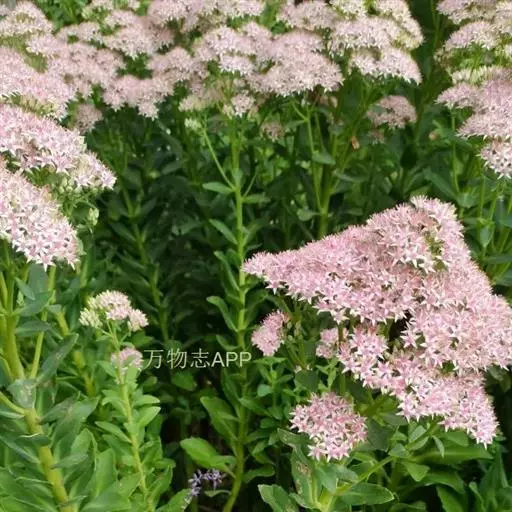 八宝(学名:Hylotelephium erythrostictum (Miq.) H. Ohba):多年生草本。块根胡萝卜状。茎直立,高30-70厘米,不分枝。叶对生,少有互生或3叶轮生,长圆形至卵状长圆形。伞房花序顶生;花密生,直径约1厘米,花梗稍短或同长;萼片5,卵形,长1.5毫米;花瓣5,白色或粉红色,宽披针形,长5-6毫米,渐尖。花期8-10月。
