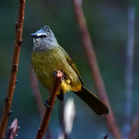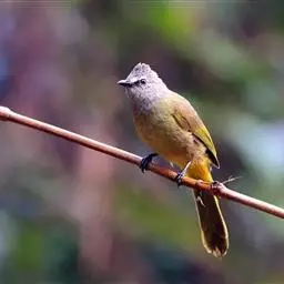 黄绿鹎,小型鸟类,体长19-22厘米。额至头顶暗褐具灰色羽缘,眼先黑色,…