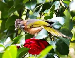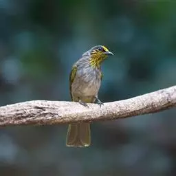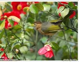 纹喉鹎:体长19厘米,是一种中等体型的偏绿色鹎。特征为头顶、脸颊、颏及喉均具黄色条纹。上体橄榄绿色。…