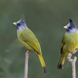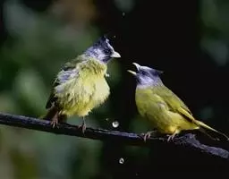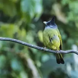 凤头雀嘴鹎:属小型鸟类,体长18-22厘米。嘴粗短、呈象牙色或乳黄色,前额和脸灰色,头顶黑色,…