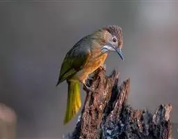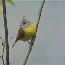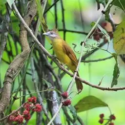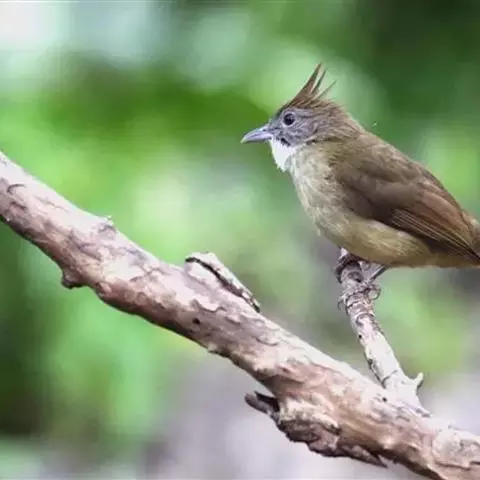 黄腹冠鹎:体长19-24厘米,是一种体型略大的褐色鹎。头顶橄榄褐色具黑褐色羽冠。白色的喉膨起,…