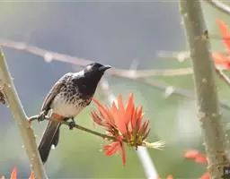 习性:常单独或成小群活动,有时亦集成大群,特别是冬季,集群有时达100只以上,偶尔也见和黄臀鹎混群。性活泼,常在树冠上来回不停地飞翔,有时也在树枝间跳来跳去,或站于枝头。偶尔也见栖立于电线上,很少到地上活动。善鸣叫,有时站在树顶梢鸣叫,有时成群边飞边鸣,鸣声粗厉,单调而多变,显得较为嘈杂。