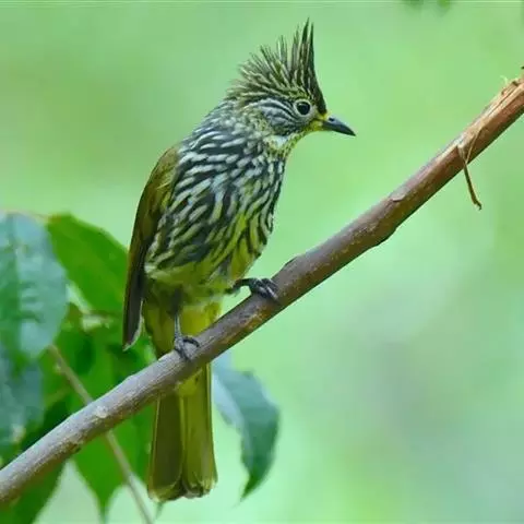 纵纹绿鹎,是鹎科鹎属的一种动物,是体型中等大小鸟类,体长20-24厘米。头绿褐色具明显的冠羽,…