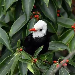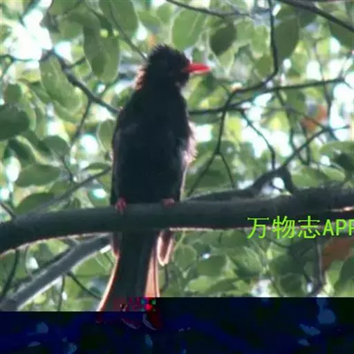 黑短脚鹎(学名:Hypsipetes leucocephalus):是鸟纲、鹎科的中型鸟类,体长22-26厘米。嘴鲜红色,脚橙红色,尾呈浅叉状。羽色有两种色型,一种通体黑色,另一种头、颈白色,其余通体黑色。野外特征极明显,容易识别。