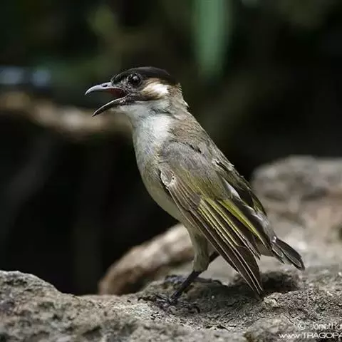 黑头鹎:体长17厘米。是一种中等体型的偏黄色鹎。特征为头辉黑、喉黑而眼蓝。上体黄橄榄色;两翼及尾偏黑,…