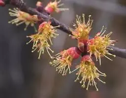 蜡瓣花是金缕梅科蜡瓣花属的落叶灌木,蜡瓣花的芽及幼枝被柔毛;叶倒卵形,先端骤尖,基部不等侧心形,…