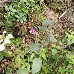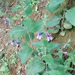 萼钟状,长约1厘米,果期略增大,5裂几达基部;裂片矩圆状卵形,先端钝至急尖;花冠紫红色,内面具斑点,长3-4.5厘米,裂片很短,先端被白色柔毛。