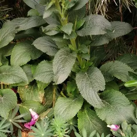 二年生或多年生草本,除花冠外,全体被灰白色短柔毛和腺毛,有时茎上几无毛,高60-120厘米。茎单生 或数条成丛。基生叶多数成莲座状,叶柄具狭翅,长可达15厘米;叶片卵形或长椭圆形,长5-15厘米,先端尖或钝,基部渐狭,边缘具带短尖的圆齿,少有锯齿;茎生叶下部的与基生叶同形,向上渐小,叶柄短直至无柄而成为苞片。