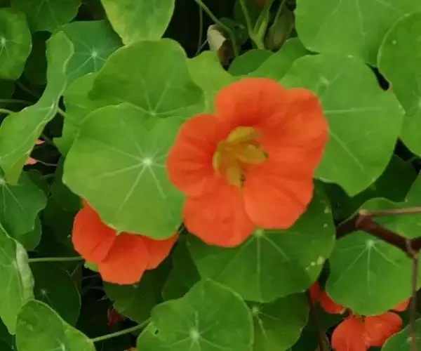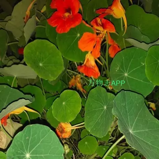旱金莲是旱金莲科旱金莲属蔓生一年生草本植物。叶互生,叶柄向上扭曲,盾状,叶圆形,具波状浅缺刻,…
