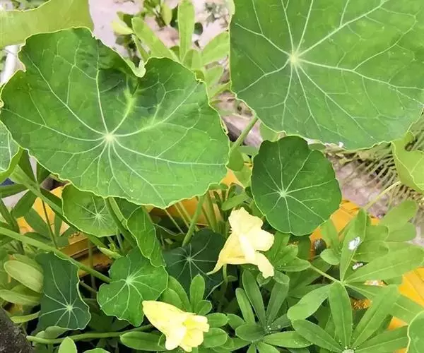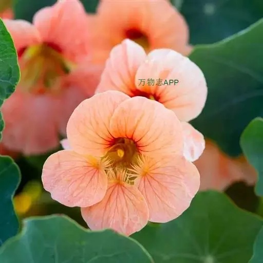 叶肥花美,花色有紫红、橘红、乳黄等,金莲花蔓茎缠绕,叶形如碗莲,乳黄色花朵盛开时,如群蝶飞舞,是一种重要的观赏花卉。
