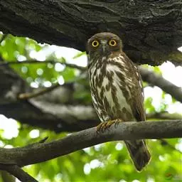 栗鸮:是鸟纲、草鸮科的猫头鹰。体长约29厘米,体重311-360克。是一种中等体型的红褐色鸮。…