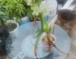 云南大百合Cardiocridum giganteum株高1~2米;地下部基生叶的叶柄基部膨大形成…