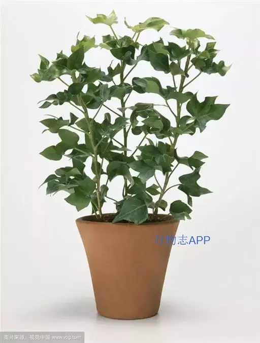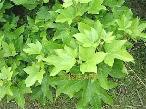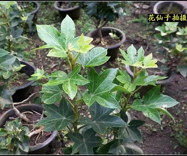 常绿性藤蔓植物,高可达1米以上。初生时茎呈草质,后渐转木质化。单叶互生,掌状五裂,叶端渐尖,叶基心形,叶宽12~16厘米,全缘,波状有扭曲,新叶密被毛茸,老叶浓绿而光滑。叶柄长8~10厘米,柄基呈鞘状与茎枝连接。成年植株在秋天开淡绿色小花。 高可达1米以上。