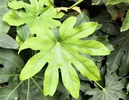也是近几年引进的常绿灌木,叶碧绿,呈掌状,五浅裂,极少三浅裂,似熊掌状,故名。熊掌木叶有光泽,边缘少齿或无齿,叶柄比八角金盘短,叶直径在15厘米左右,比八角金盘叶片小而厚实,相比之下,比较秀气。