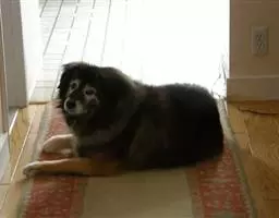 黑藏狮 奇儿阿素犬的身体外观显得协调性很好。从整体比例上看,他们的身体看上去会比实际显长。从前胸到后臀的长度一般比压肩高长出百分之十。奇儿阿素犬的背线是水平的,胸部结实但是不深,胸深达不到前腿的肘部。腰部很紧且有张力,能看出来比胸部要窄。尾巴是上扬的,放松的时候下放到足部脚关节处。上扬的时候尾部的毛会弯曲超过一个完整的卷,通常一个半卷是最好的。奇儿阿素犬的颈部有肌肉,宽厚且强壮。头颈的长度通常比头的宽度长百分之二十。颈部的毛一直垂到前胸。当奇儿阿素犬警惕的时候,颈毛会蓬起来。不合格的奇儿阿素犬:尾巴不向上弯曲。