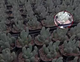 紫珍珠是景天科石莲花属的多年生肉质草本植物。植株中小型;叶片肉质,匙形,呈莲座状紧密排列;叶片粉紫色,…