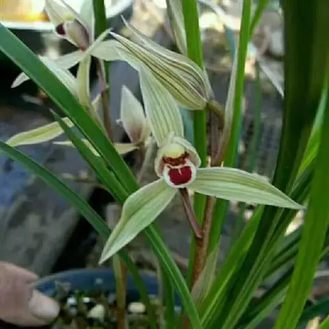 建兰素花,绿白色,清香,一枝开花5至12朵。叶色钢青,细而挺拔,有铮铮铁骨之相,所以叫铁骨素。在日…