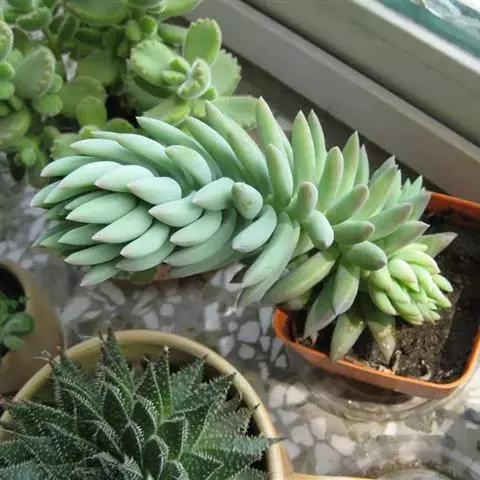 灯美人是景天科的园艺品种,多肉植物。叶片近柱状,丛生,在日照时间长、温差大的环境下会呈现橙粉色。