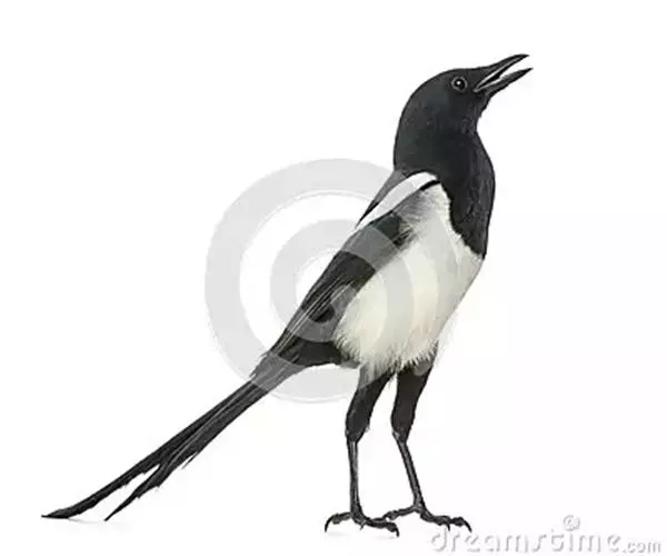 白肩鹊鵙包括尾巴体长34-50厘米,雄鸟尾长22-35厘米,尾长21-34厘米;雄鸟体重55-97克,雌鸟体重71-96克 。这种伯劳和喜鹊的羽毛很相似,和伯劳科的其他鸟类相比具有非常鲜明的颜色和图案。成鸟有黑色和白色的羽毛,尾巴很长。头和翕具有光泽的黑色,翅上有大块白色,臀部有V形的灰白色,在飞行时更为显眼。上覆羽黑色,次级和三级飞羽黑色有白色斑块。长长的尾巴黑色。下体,颏、喉和胸都是黑色的,具褐色光泽,腹部和侧面是乏味的黑色。 尾巴覆羽黑色。 雌雄相似。鸟喙黑色,眼睛深褐色,腿和脚都是黑色。