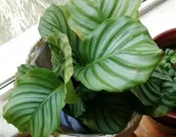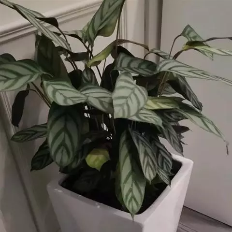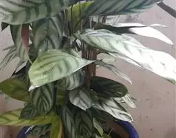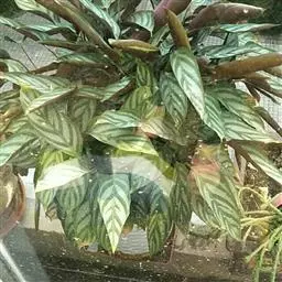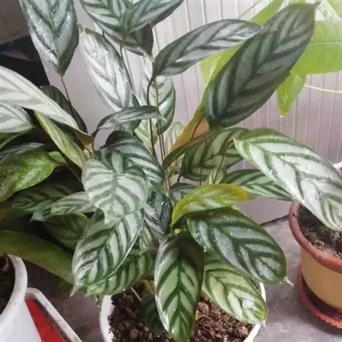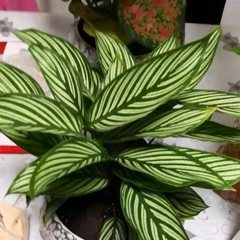 豹纹竹芋(学名:Maranta leuconeura E.Morren)竹芋科,肖竹芋属多年生常绿草本观叶植物。株高可达30厘米,多分枝,叶宽矩圆形,正面有光泽淡绿色,叶背灰绿色。叶倒卵形,柄基部鞘状。总状花序,花成对,苞片少数,萼片披针形;花冠管圆柱形,基部肿胀,花柱粗。坚果状,不开裂;种子1枚。