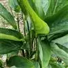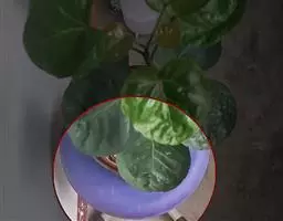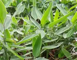 叶宽矩圆形,长8厘米至15厘米,宽7厘米至10厘米,基部心形,前端尖凸,正面淡绿色,有光泽,侧脉6对至8对,脉间有两列对称呈羽状排列的斑纹,初为灰褐色,后呈深绿色,叶背灰绿色。 柄基部鞘状。