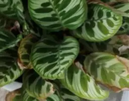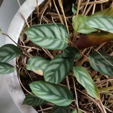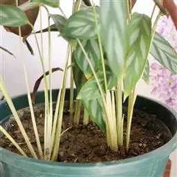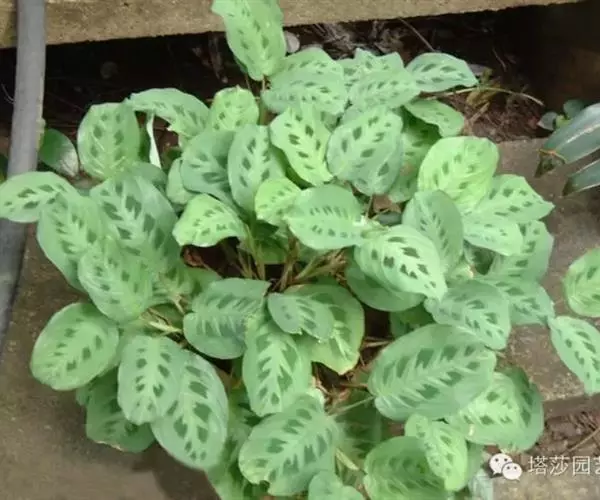 应依据“勤施薄施”的原则,生长旺季每2周施一次花生麸与复合肥的混合肥或腐熟堆肥。肥料的营养成分应以氮肥为主,磷、钾肥次之。由于竹芋为观叶植物,适当增施氮肥,能使叶片色泽更加优美。另外,可用含氮量达46%的尿素配制成0.1%的溶液,加含磷大于50%、含钾大于30%的磷酸二氢钾配制成0.2%的溶液作根外追肥,在早上露水未干时或傍晚施用效果较好。喷施时要用细孔喷雾器把叶片正反两面全喷到,每周喷1次,连续喷施3次后停止1次,然后再连续喷施。特别要注意的是施肥的浓度不宜过大,否则易引起叶片灼伤造成肥害,严重时甚至引起植株枯死。冬季休眠期和夏天太炎热时,要停止施肥。