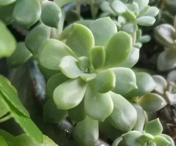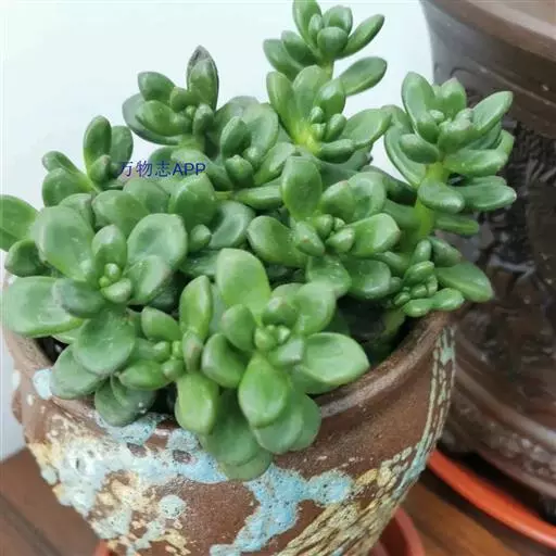 白霜,景天科景天属小型多肉植物,叶子绿色肉质会有白霜覆在表面。