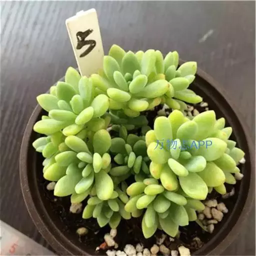 外观:春萌 ——景天科景天属多肉植物。叶片长卵形,绿色至黄绿色,呈莲花状排列。叶片会在光照强度和温差的影响下带点果冻般的透明,非常具有萌意。如光照不足,则叶片颜色会显得只有绿,没有萌而又懵。春季开花,总状花序,小花钟形,白色,数量庞大的小白花狙击在花梗上,犹如一束小捧花。