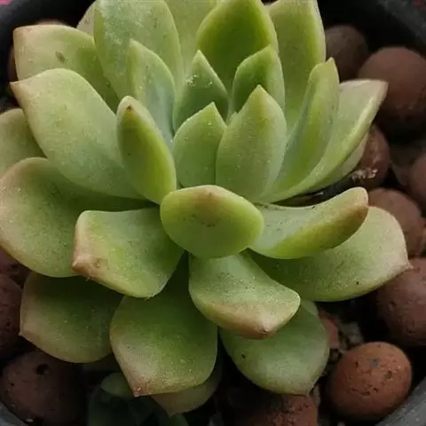黄鹂——景天科景天属,多年生多肉类植物,植株具短茎,肉质叶,排列紧密,呈莲座状,叶片匙形,顶端有小尖头,叶片松散,表面附蜡质呈黄绿色或金黄色偏红,长期生长于阴凉处时叶片呈绿色,光照充足情况下,叶片边缘会泛红,花单瓣,聚伞花序,浅黄色,较少开花。