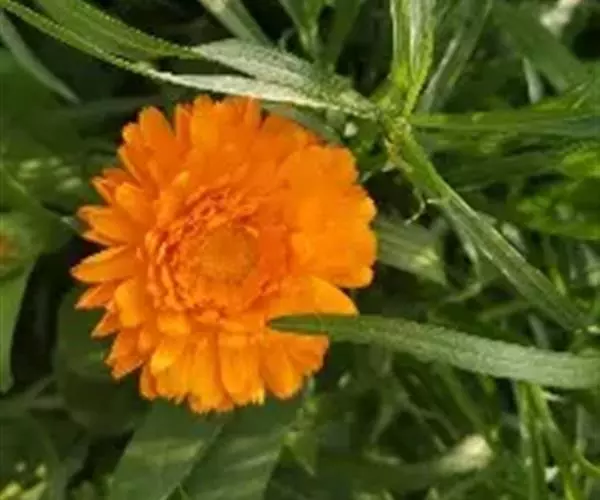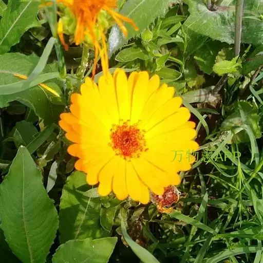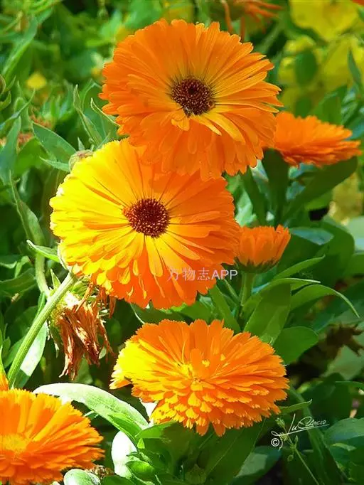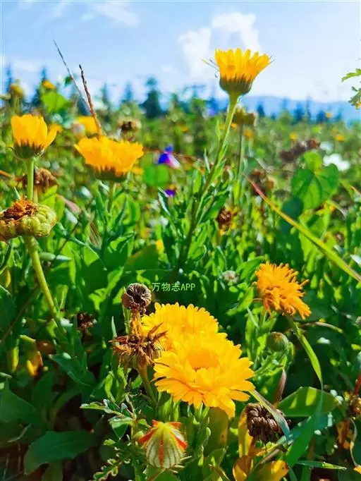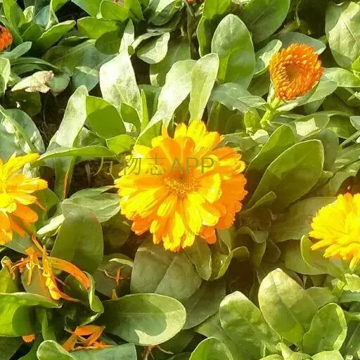 金盏花(Calendula officinalis L.),为菊科两年生草本,全株被毛。叶互生,长圆形。花黄色或橙黄色,花期4~9月,果期6~10月。喜生长于温和、凉爽的气候,怕热、耐寒。原产于南欧、地中海沿岸一带。